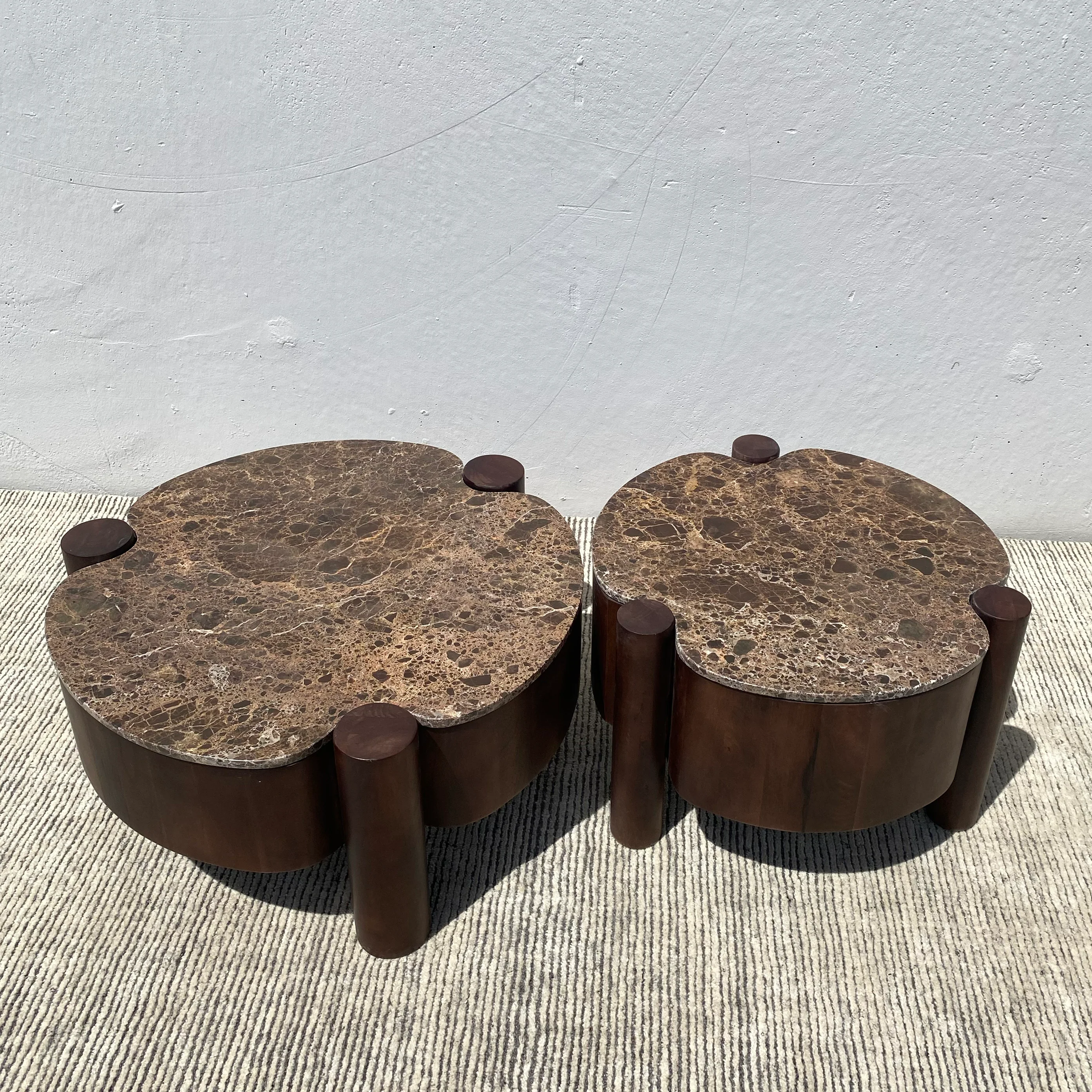 Meet Moda – a round coffee table style, featuring a stunning brown Emperador marble top set upon a drum-style acacia wood base with inset column leg detailing. Exuding contemporary style, these stunning coffee tables will be the centerpiece of any living space.