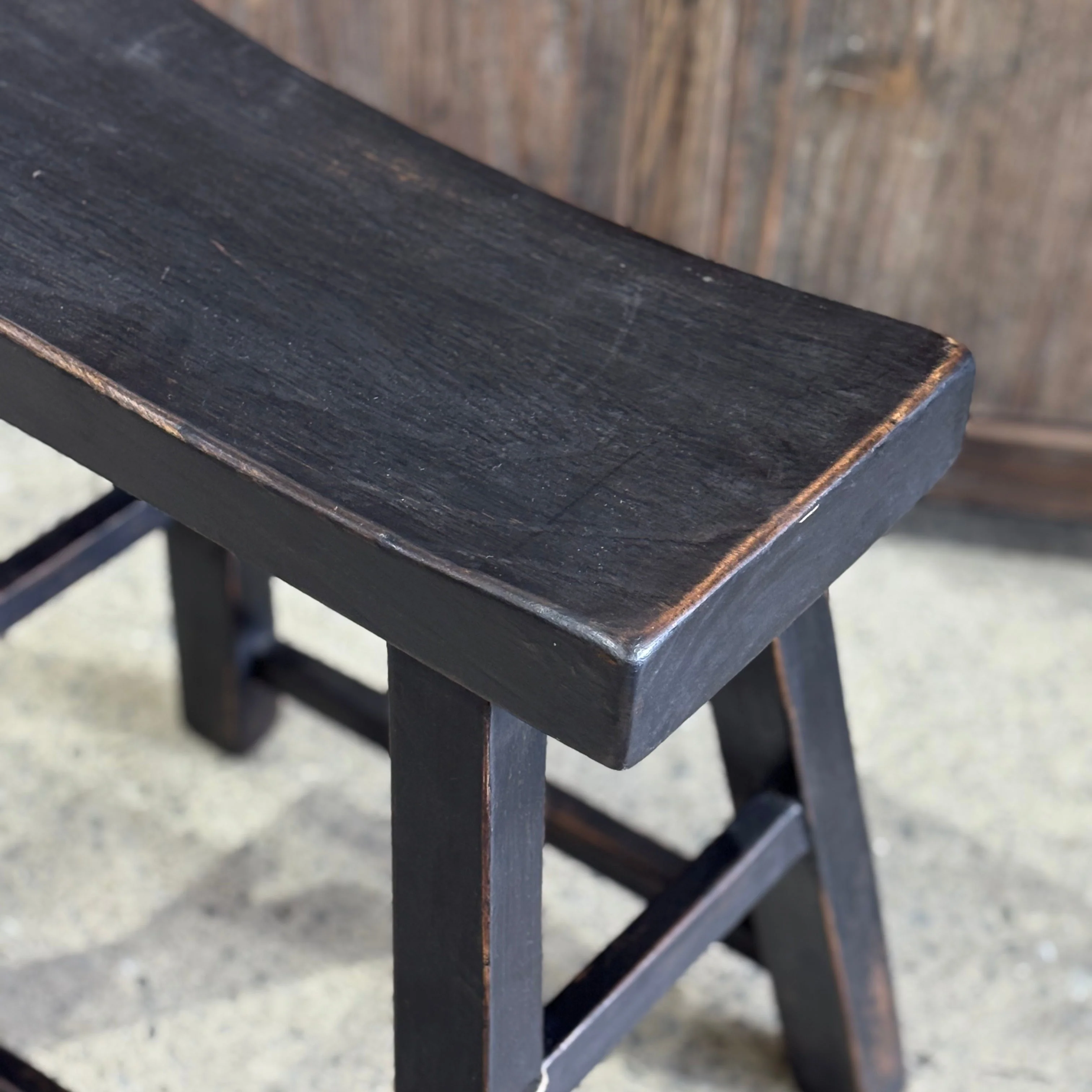 Introducing the Renoir Stool - featuring a timeless design inspired by traditional Chinese craftsmanship, in a beautiful distressed black finish. Classic simplicity with artisan flair.Â