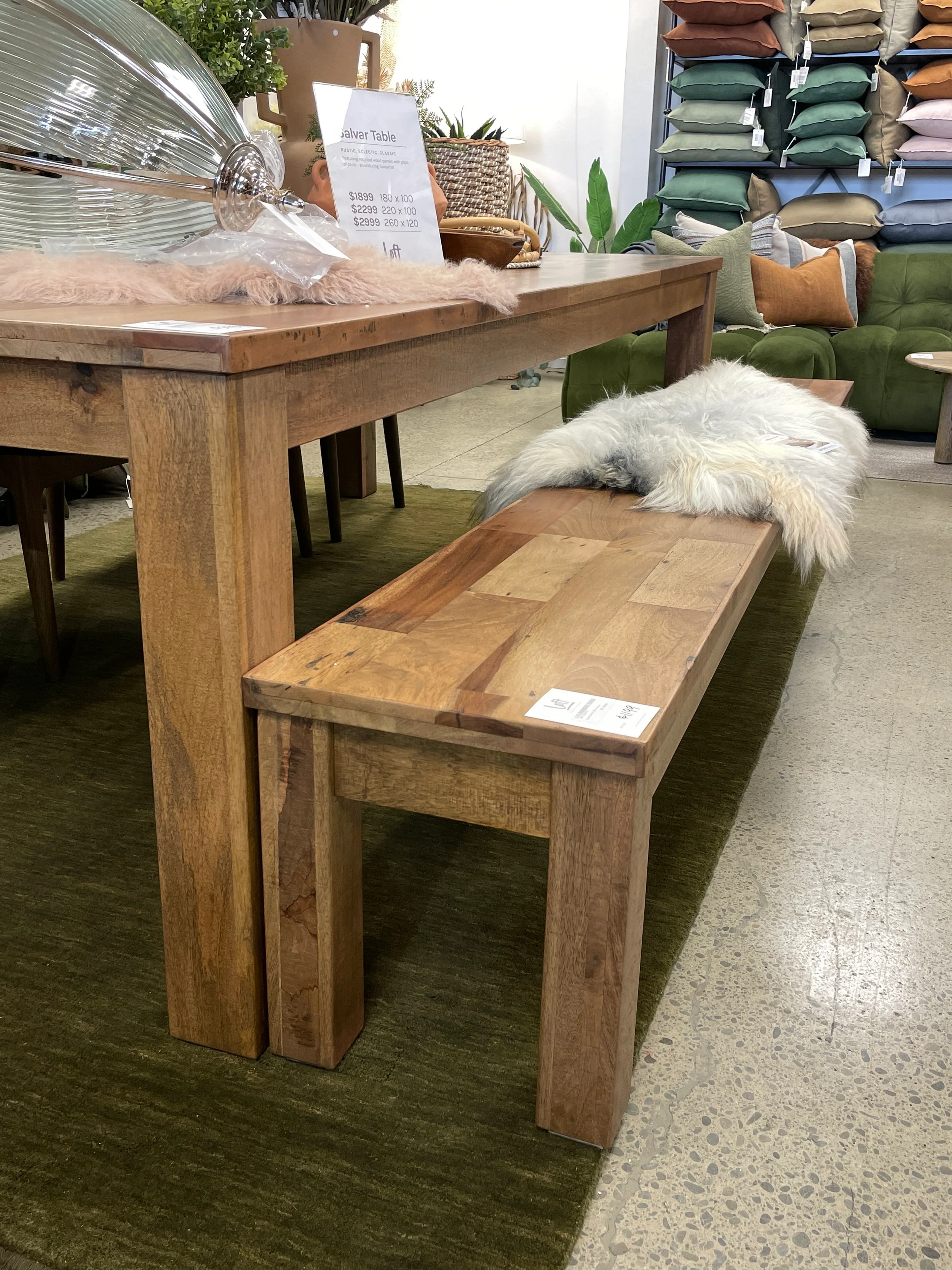The bench counterpart to our rustic favourite dining collection - the Salvar, crafted in a combination of mango wood and recycled hardwood for a solid distressed look. These sturdy, beautiful benches are one of a kind, featuring the character and quirks of the timber’s first life - occasional patches of colour, knots, nail holes - all protected by a durable lacquer for a smooth and hardwearing finish.